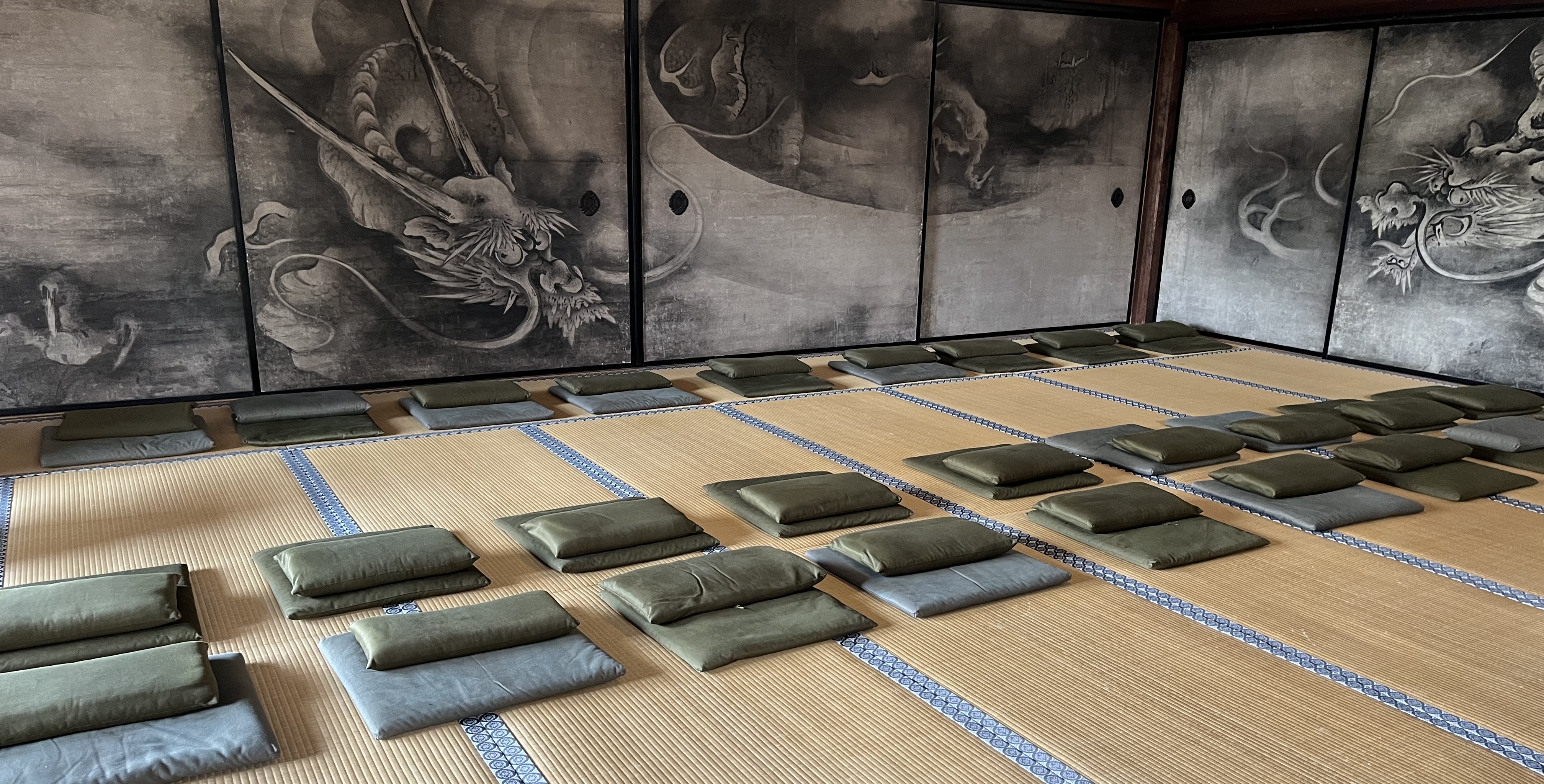 Die Meditation im Sitzen (Zazen) steht im Mittelpunkt der Zenpraxis. Wir sitzen mit unserem Körper und nehmen den Atem wahr oder fokussieren uns auf ein Koan.